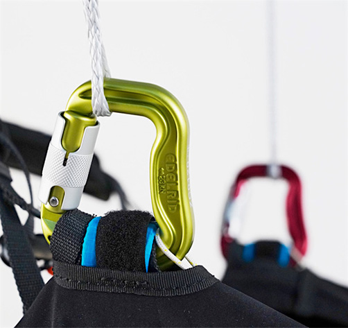 Кокпит прикреплен к нагрудному ремню с помощью пряжки, позволяющей регулировать угол наклона приборной панели