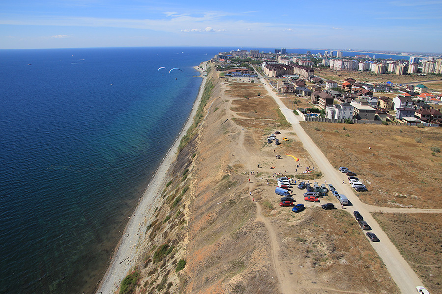Вид на Анапский пара-старт и берег в северном направлении (август 2020).