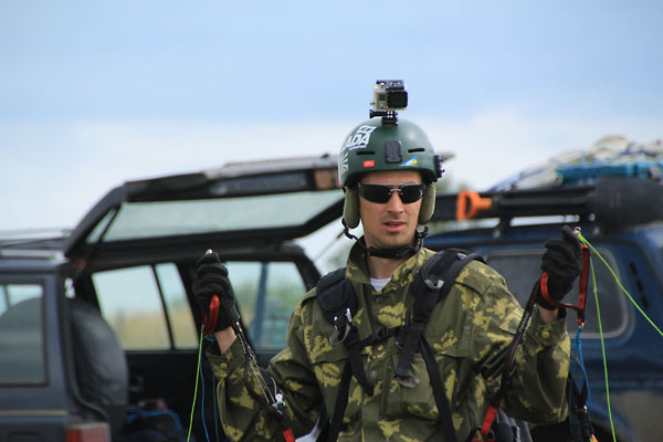 На старте и в полете Женя Гусятников с парапланом Параавис Джаз.