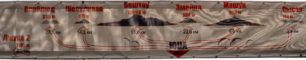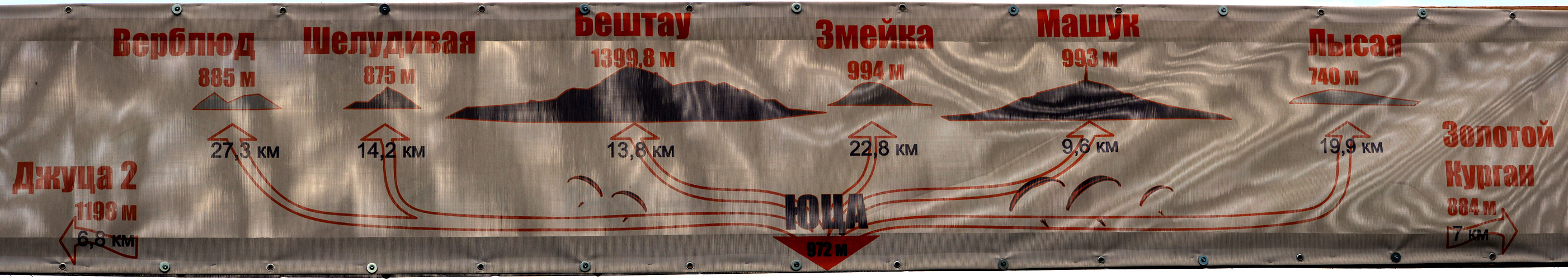 схема окрестных гор с их высотами и расстояниями от Юцы. Очень удобно