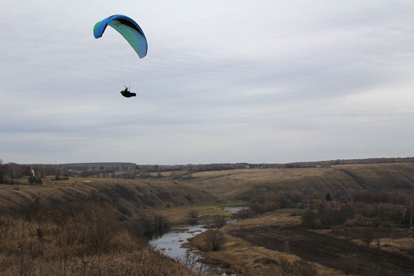 Осенний Вяжеский пейзаж с парапланами над южным склоном "Бочки".