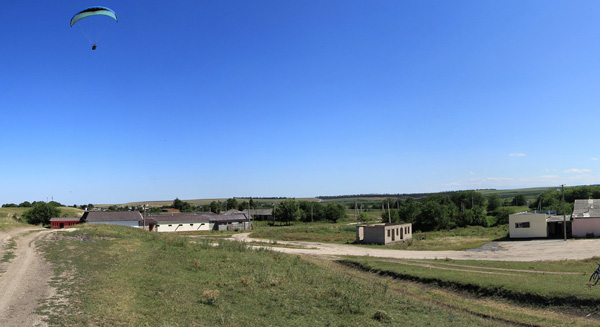 Вид на парапланерный лагерь из динамического потока над горой Юца.
