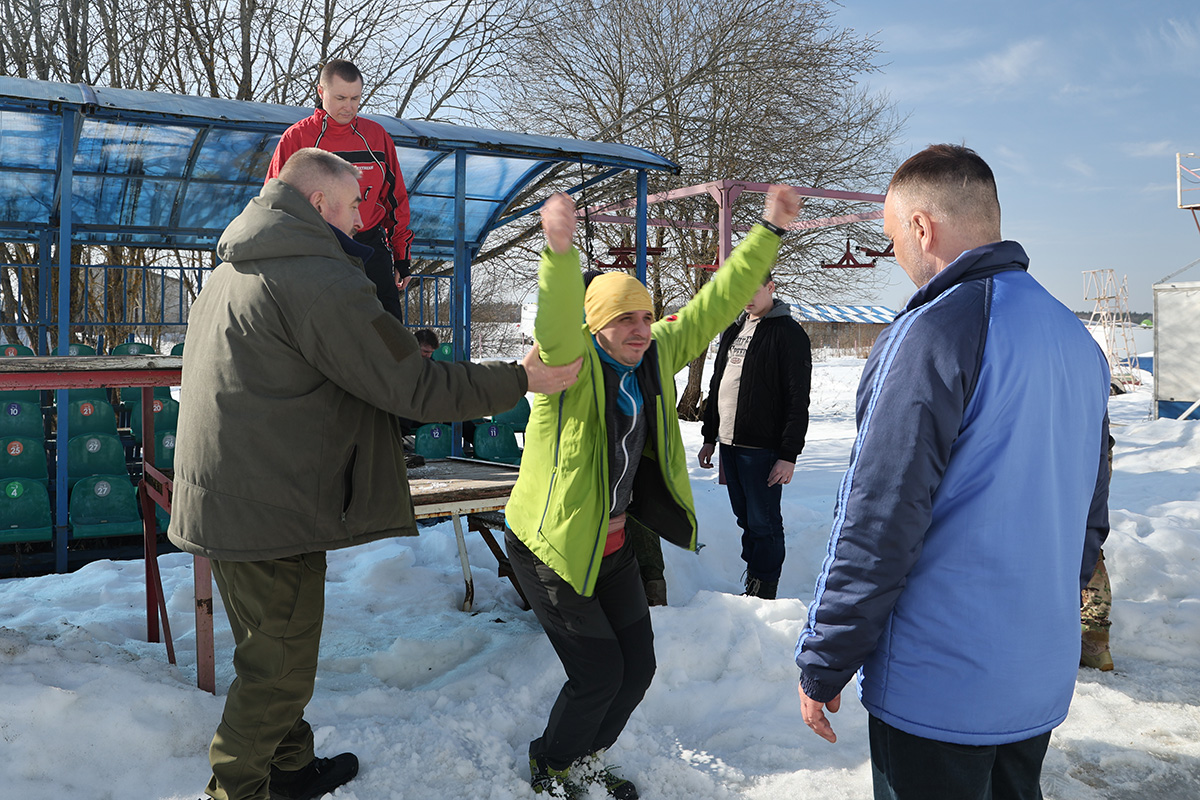 Женя Абрамов отрабатывет технику парашютного приземления:
